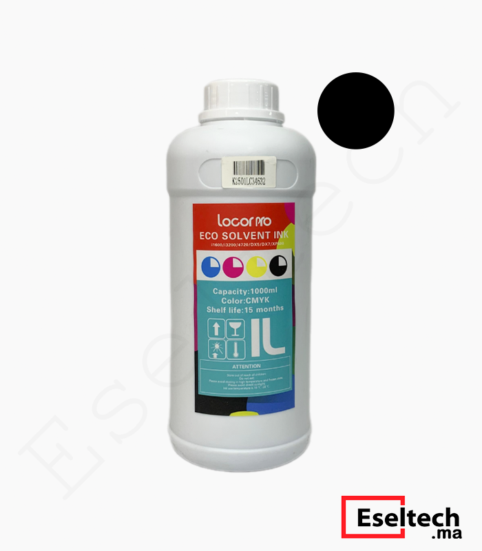Cartouche d’Encre Éco-Solvant Noir (K) 1 Litre – Locor Pro