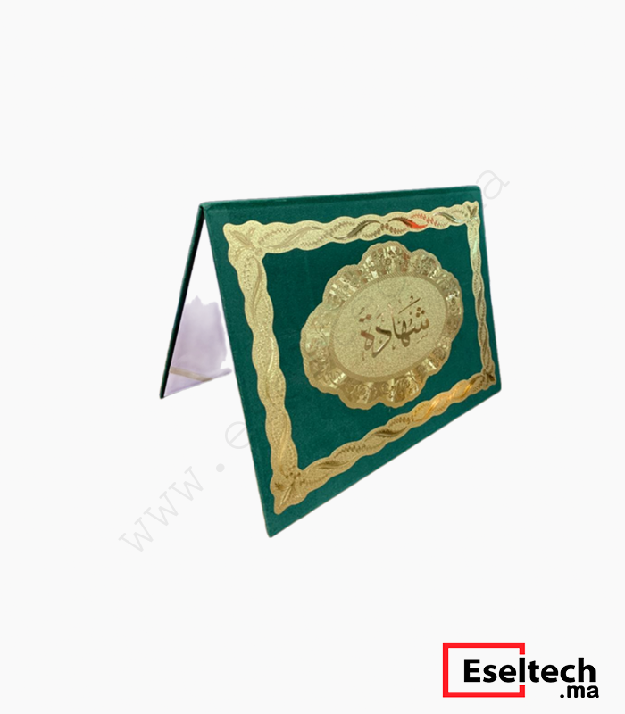 Le porte attestation A4 Vert avec marquage doré en arabe est idéal pour la présentation et la protection de documents officiels tels que certificats, attestations, diplômes et documents religieux. Son design élégant, sa finition dorée raffinée et son format A4 standard offrent une solution esthétique et professionnelle pour les cérémonies, événements officiels et cadeaux prestigieux.