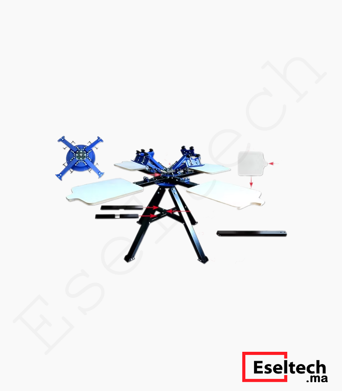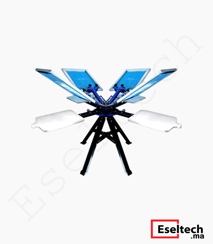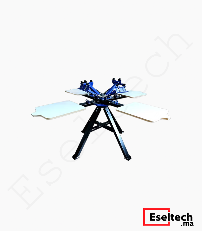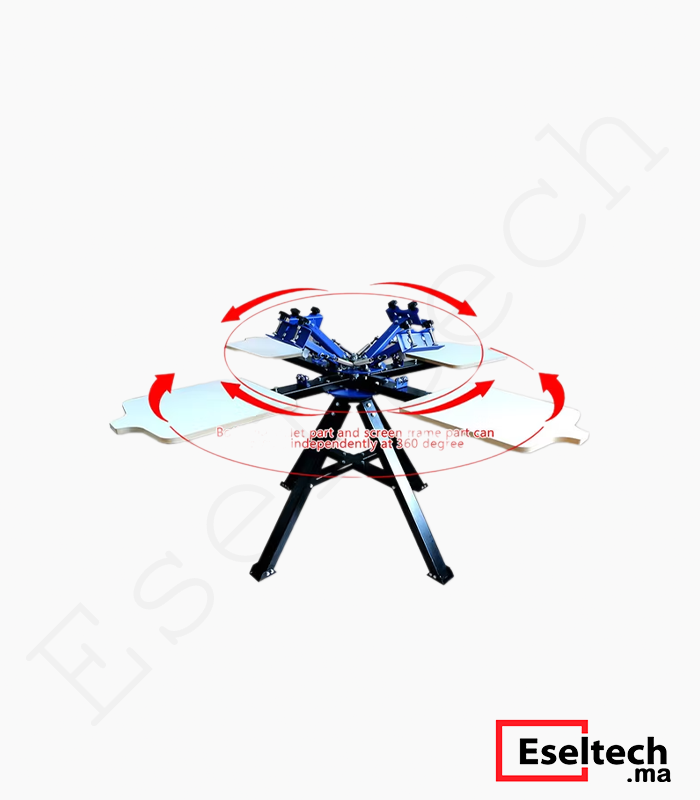 Optimisez votre production textile avec la presse de sérigraphie MK-F442A, conçue pour l’impression 4 couleurs avec une précision exceptionnelle. Dotée de 4 stations de travail indépendantes et d’un système de rotation à 360°, cette machine manuelle offre une productivité idéale pour les ateliers, les boutiques de personnalisation et les imprimeurs professionnels au Maroc.